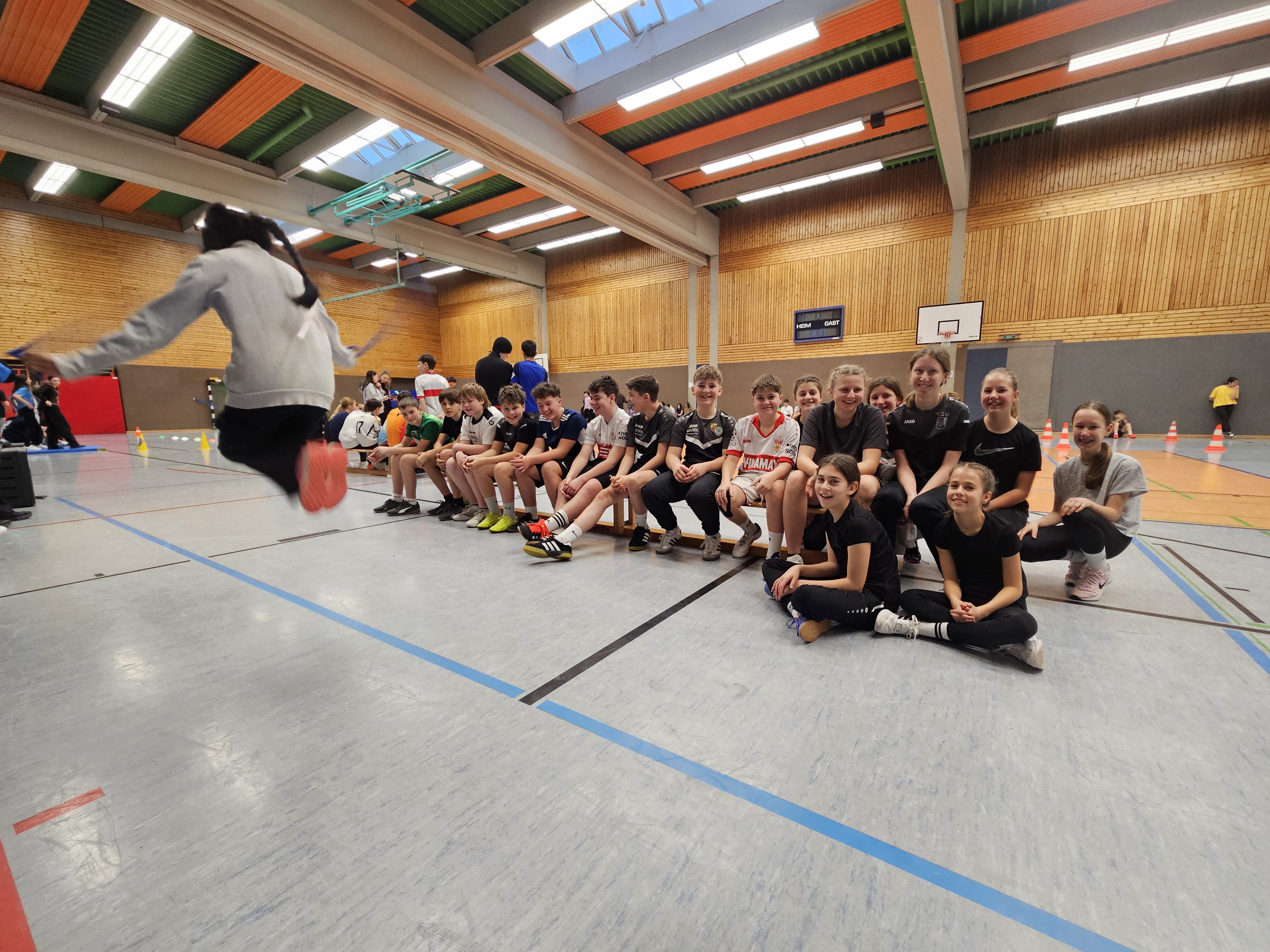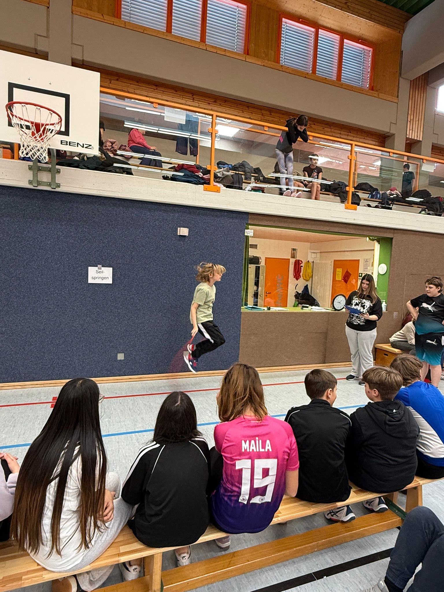 Als Klassenwettbewerbe gab es zusätzlich noch drei weitere Stationen (Seilspringen, Ball jonglieren und Prellen). Hier mussten die Schüler/innen 20 Sekunden ihr Bestes geben. Anschließend wurde der Durchschnitt der Klasse berechnet und so die Platzierungen ermittelt.
